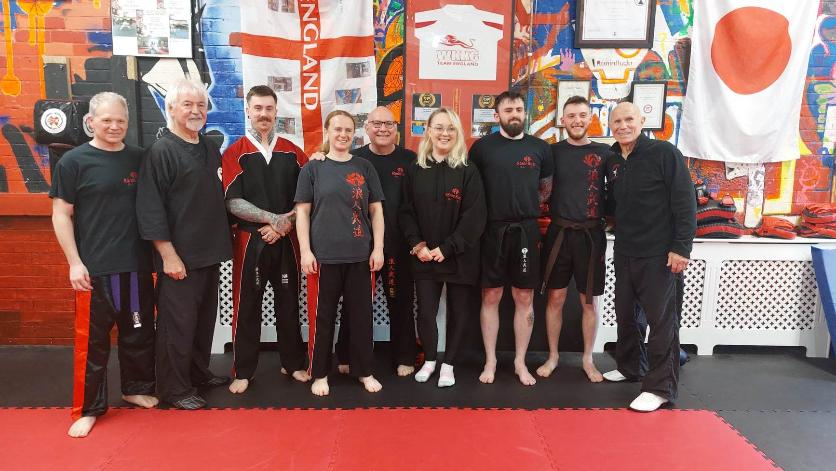 This is some of our instructor team at a recent seminar with visiting kickboxing legend, Bill Wallace